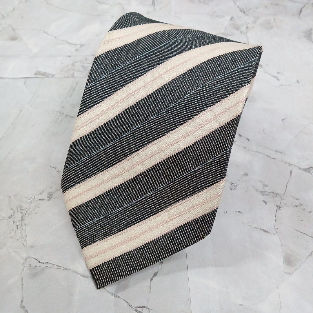 - シップス ネクタイ 灰色 クリーム色 ピンク ストライプ柄 絹【n1371】