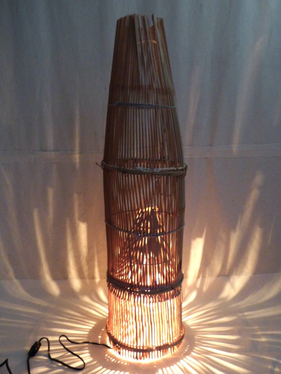 - 【新品未使用】和インテリア 竹製 職人技 手作り 日本製 筌 うけ 照明枠&実用品 高さ90cm 直径21.5cm 1.2kg アンティーク