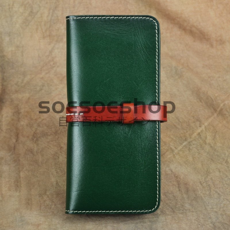 > 新作最高の贅沢肉厚新品 手染 栃木レザー 長財布メンズ 財布 本革 ウォレット 牛ヌメ革 手縫い 二つ折り 長財布 経年変化 緑