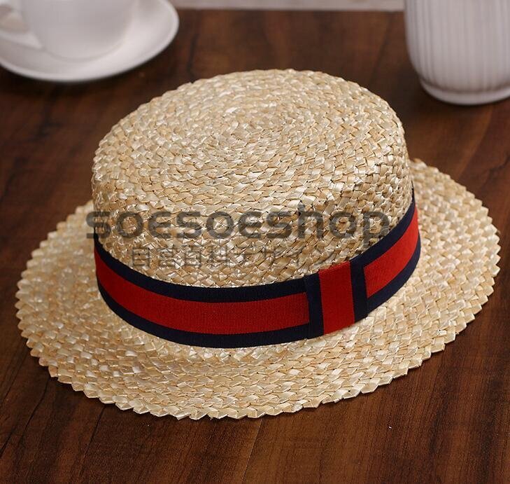 - オールド感*ヴィンテージ レトロ オールドスタイル フラットヘッド ストローハット カンカン帽子 新品 メンズ レディース USA レッド