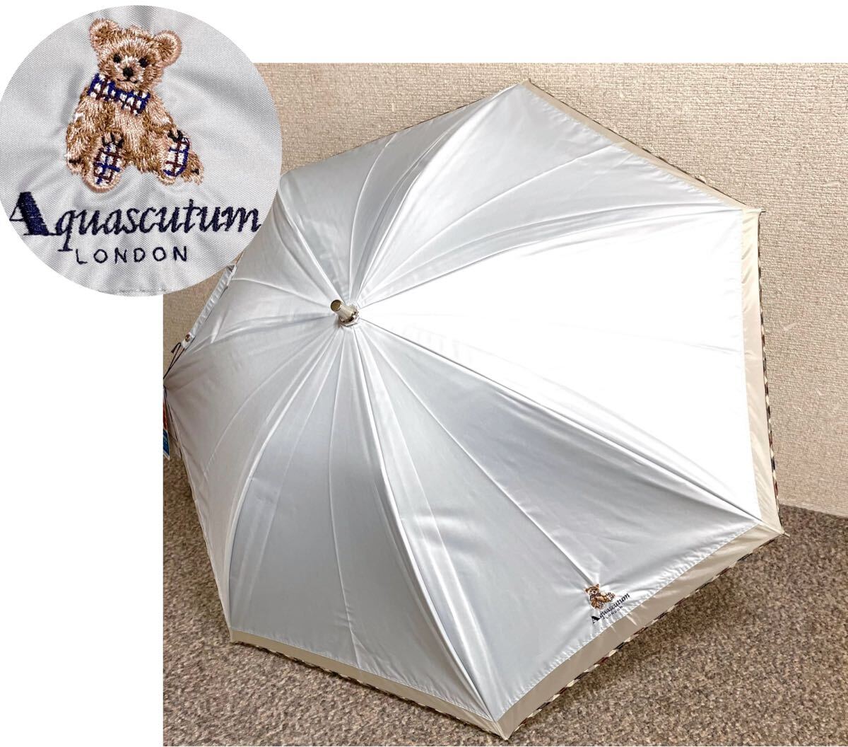 - C★送料無料★新品 アクアスキュータム 日傘 傘 長傘 プチパラ 1級遮光 晴雨兼用 ベア チェック