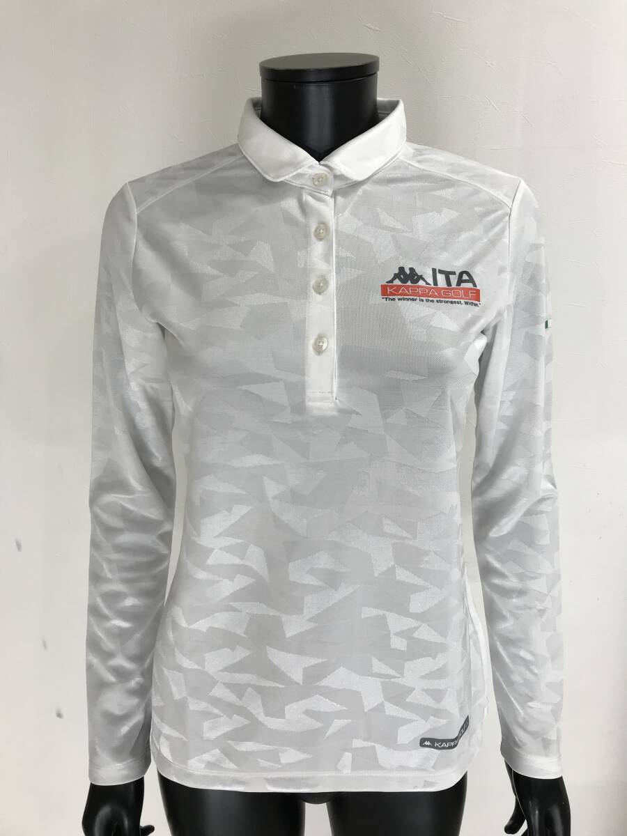 > 【USED】Kappa カッパ ポリエステル 長袖 ポロシャツ 総柄 ホワイト 白 レディース L ゴルフウェア