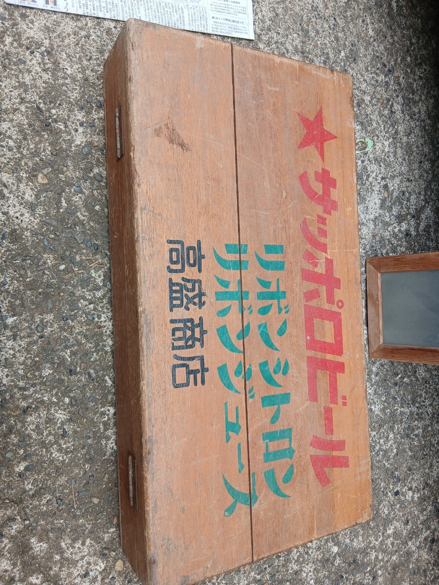 - レトロ サッポロビール 木箱 リボンシトロン リボンジュース グラス入れ コップ入れ アンティーク 当時物 縦38横72センチ