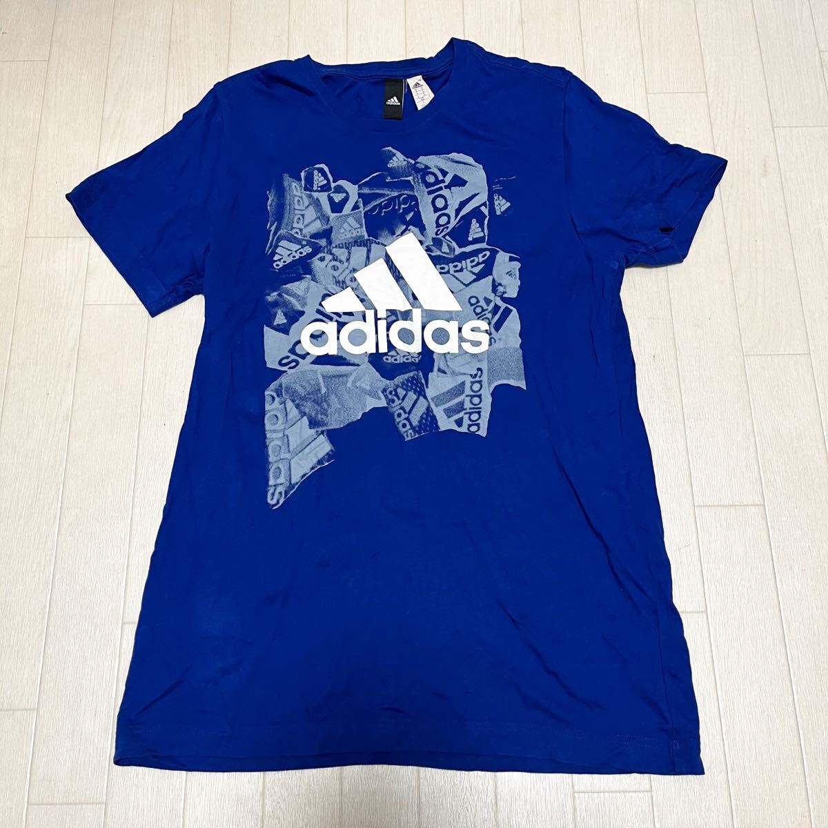 - 和721★④ adidas アディダス 半袖 ロゴプリント Tシャツ O ブルー メンズ