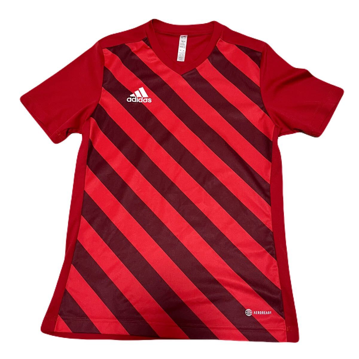> 和721★ adidas AEROREADY アディダス 半袖 スポーツ Tシャツ 斜めストライプ Vネック S レッド メンズ