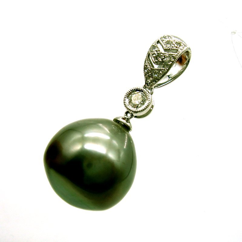 - PE925:K18WG 黒蝶真珠 ダイヤ ペンダント