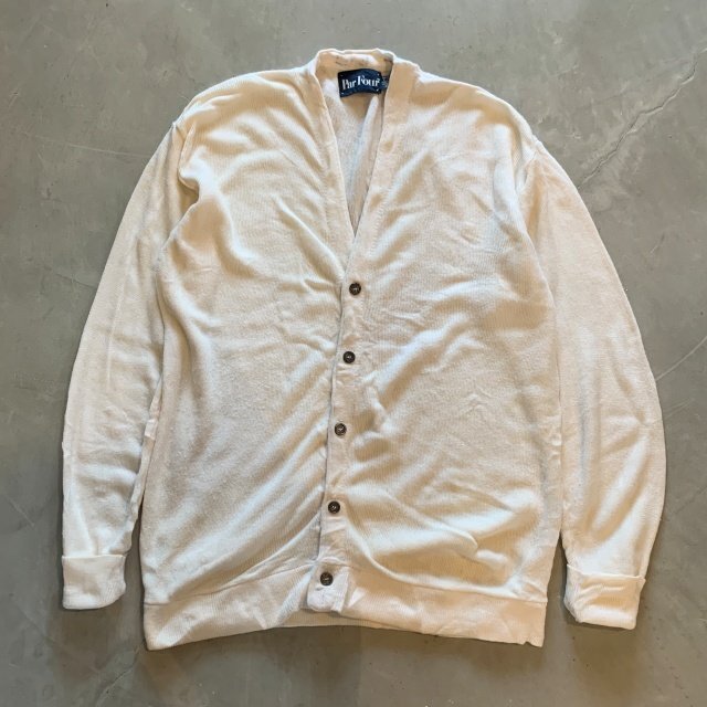 > 【L/XL】USA製 Par Four アクリルニット カーディガン 白無地■ビンテージ オールド アメリカ古着 ニット ゴルフウェア 80s/90s