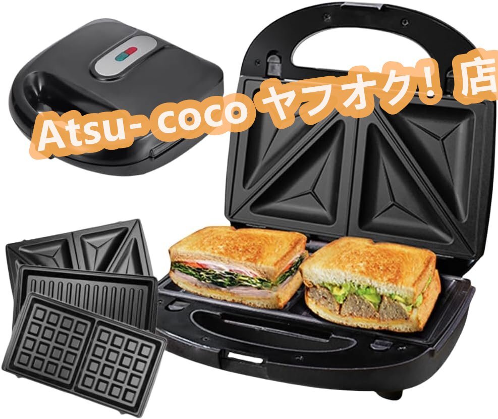 - ポータブルサンドイッチワッフルメーカー 3-in-1ボウル両面グリル朝食調理器 サンドイッチ朝食マシン 交換可能なベーキングパン3枚付き サ