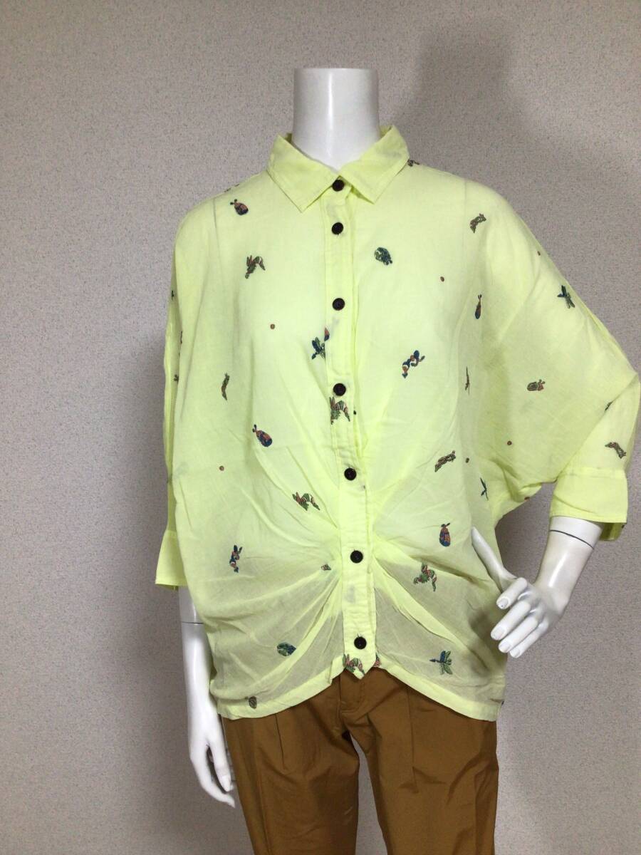 - M2453/センソユニコ Cube Cube デザイン刺繍シャツ/38/イエロー