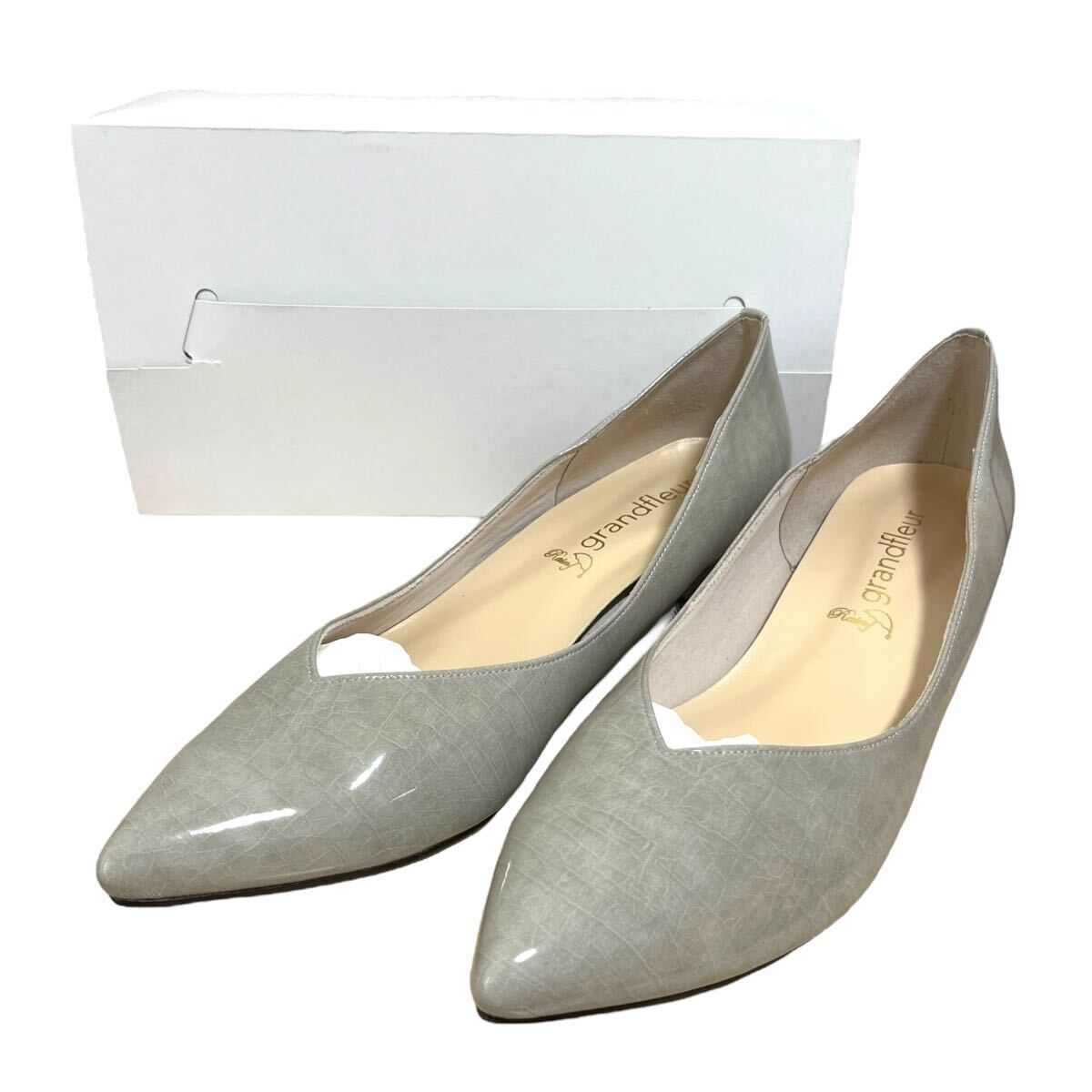 > ※1092 【未使用/大きいサイズ】定価¥8,690- grandfleur (タルサタイム) エナメルレインパンプス グレー 雨靴 日本製 26.0cm