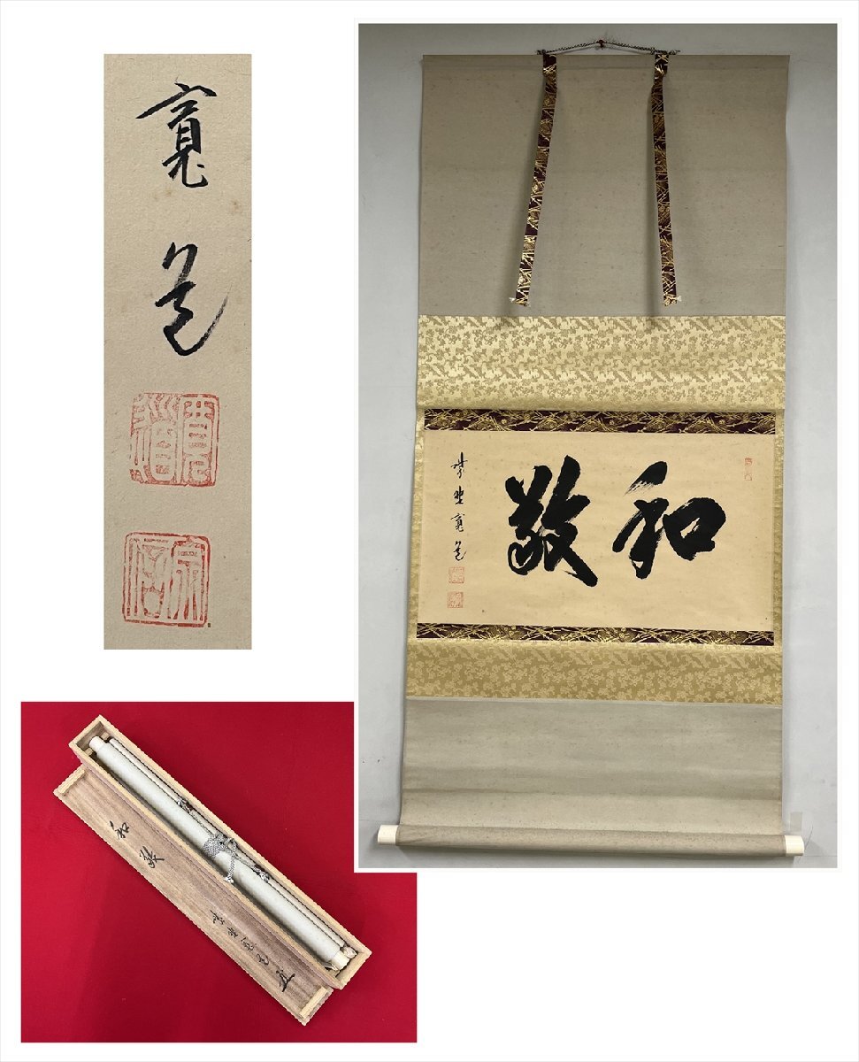 - 【千寿】大徳寺派 臨済宗 藤田寛道 和敬 横物 紙本 a477◆箱/茶道具/古美術/時代品/掛軸/100023848