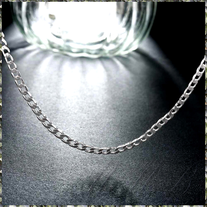 > [NECKLACE] 925 Sterling Silver Plated 6面 カット 喜平チェーン スリム フラット シルバー ネックレス 3.6x600mm (6.5g)