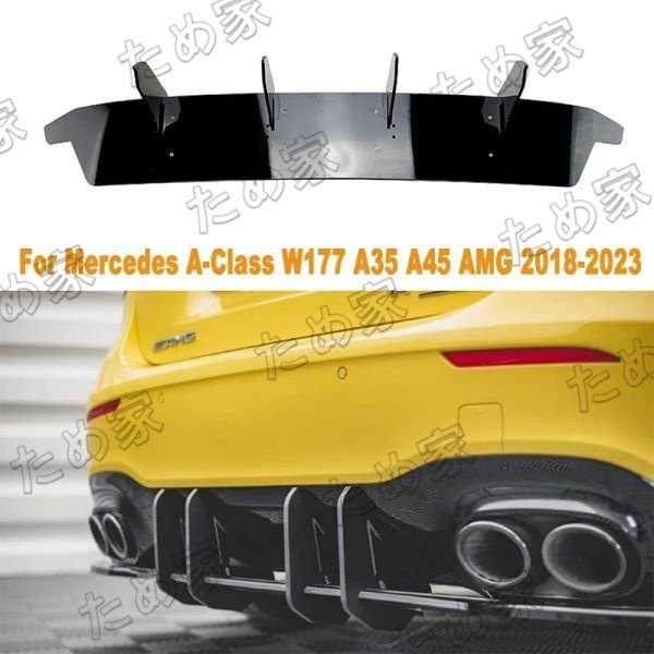 - リアバンパー ディフューザー ブラック センター ベンツ Aクラス W177 A35 A45 AMG 2018-2023 リア スポイラー カナード