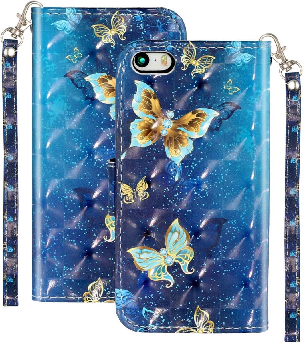 - iphone 5 / 5S iphone SE (第1世代) ケース 手帳型 おしゃれ 可愛い 3D プリント 輝く 絵柄 ストラップ 付 キラキラ スマホケース (蝶々)