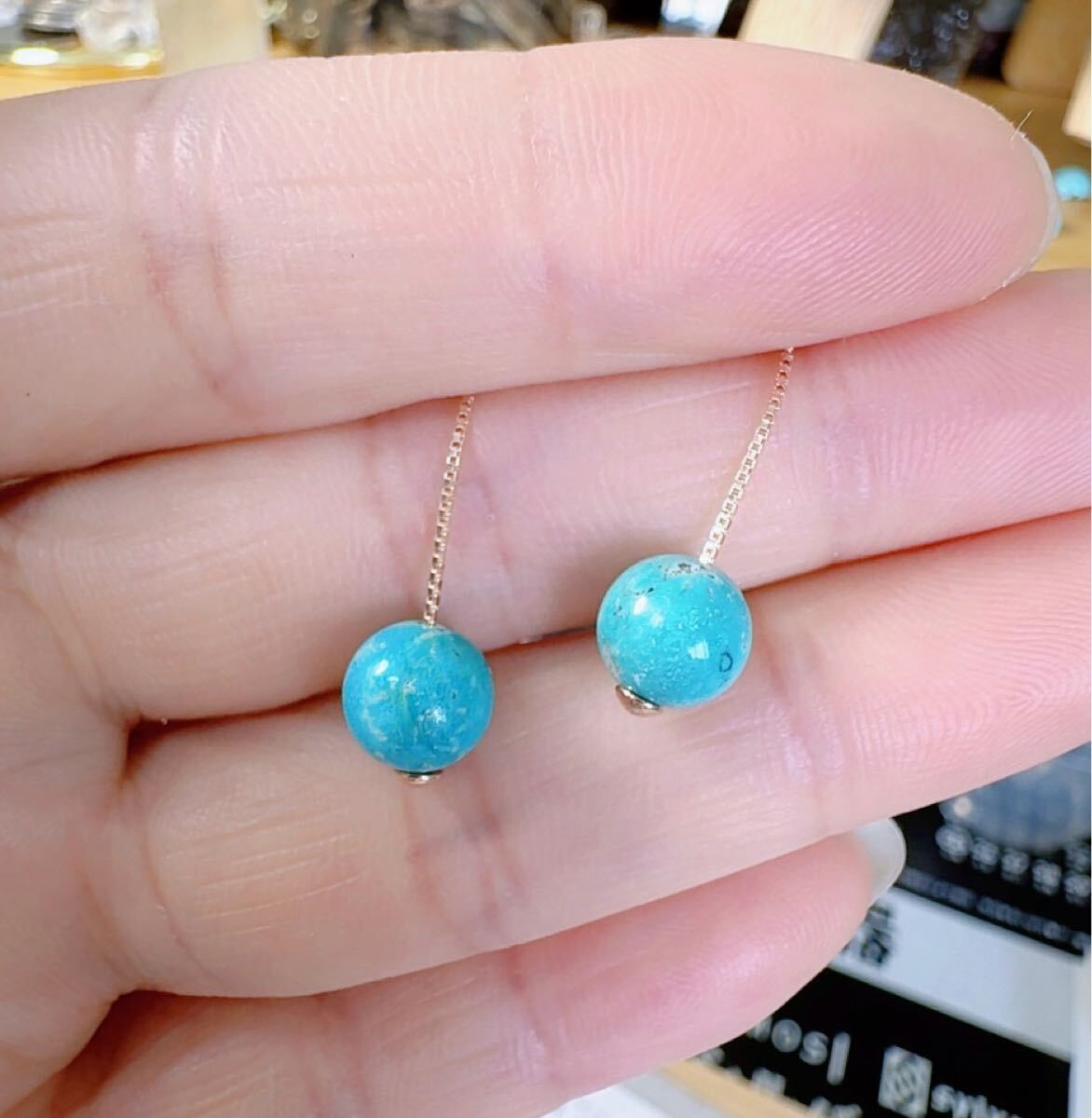 > R2-01005 天然石 ターコイズ ピアス《本物保証》一点物 12月誕生 成功 繁栄 縁起物 一品一図 パワーストーン 上品な おしゃれ~
