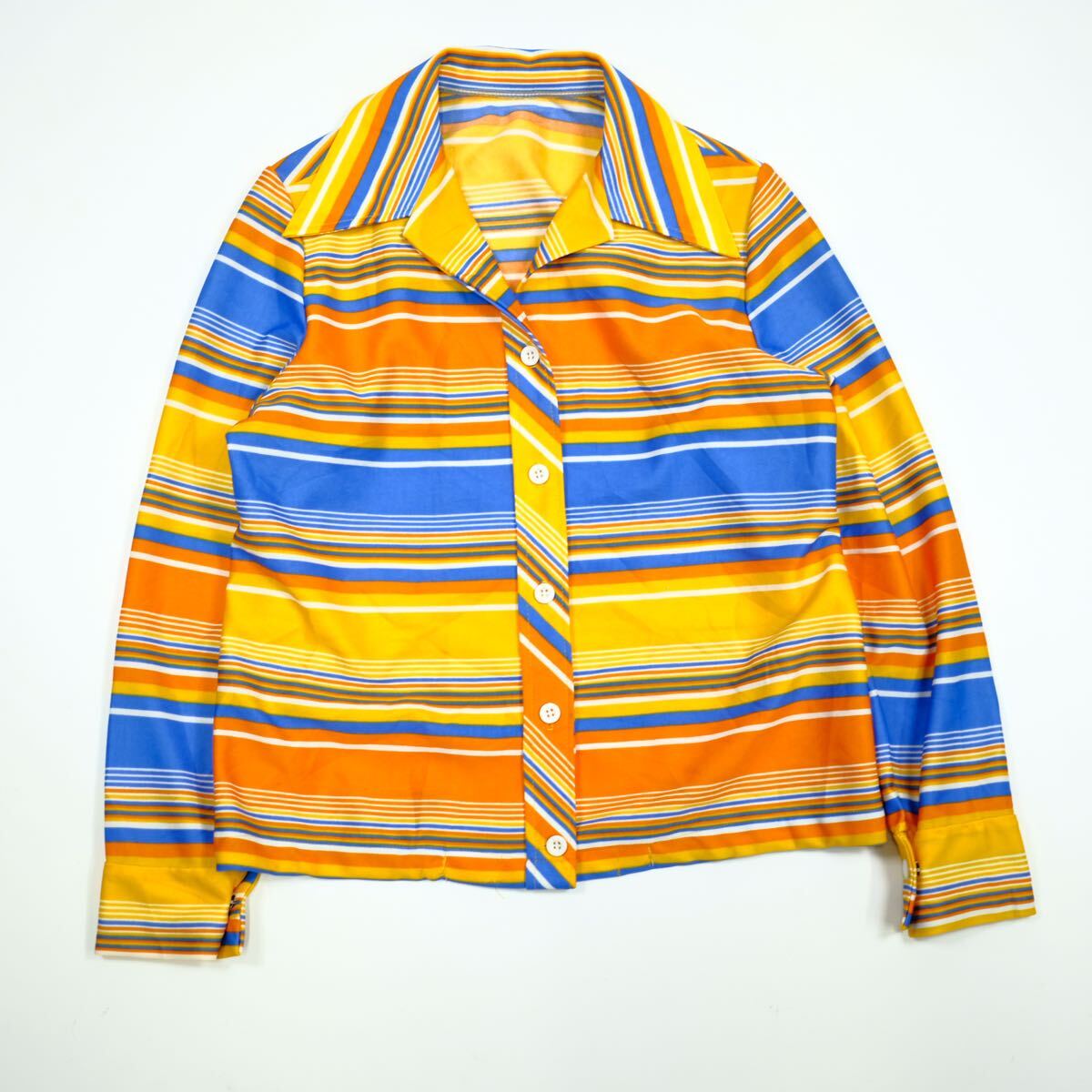 > 1970s ビンテージ マルチストライプデザインシャツ オープンカラー 古着屋 ボックスシルエット カラフル アート ヒッピー