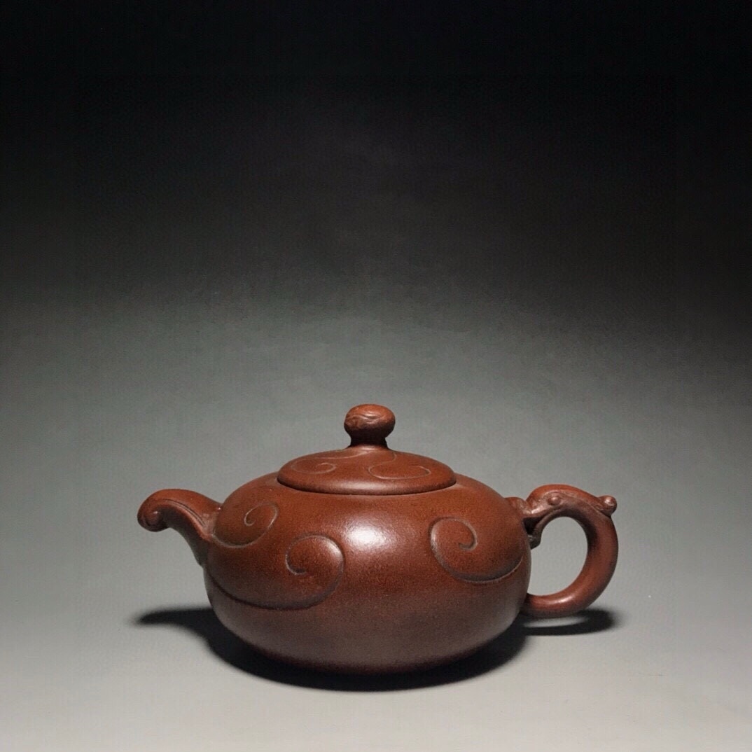 - 友人館蔵 古紫砂製 如意壺 范章恩款 茶壺 紫砂壺 急須 茶道具 煎茶道具 極細工 古賞物 古美味 東洋彫刻 時代物 骨董 中国古美術