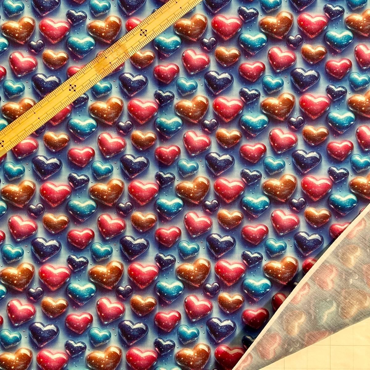 - D58 3D立体プリント生地 ハート柄 エナメル水色ハート ポリコットン ハギレ 生地 ハンドメイド 輸入生地