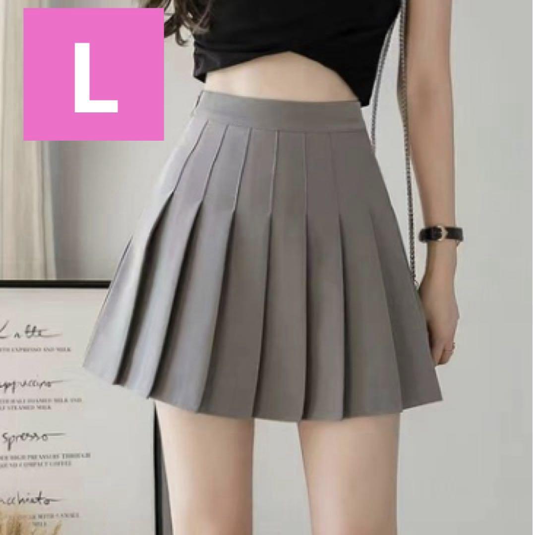 - 【グレー/L】ミニスカート プリーツ フレア インナーパンツ 裏地あり