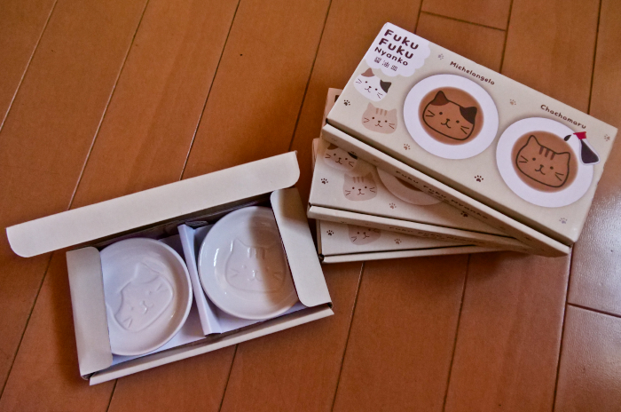 - ふくふくにゃんこ Fuku Fuku Nyanko 醤油皿 4箱セット ミケランジェロ チャチャ丸 【未使用品】