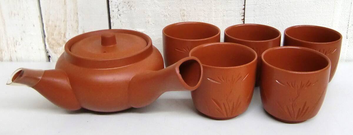- *伝統工芸 工芸品 茶道具 *常滑焼 朱泥 *茶器揃 6点まとめ セット *急須 1点 湯呑 5点 *茶器 茶道 時代 古物 骨董