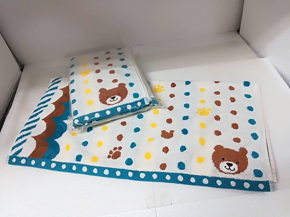 - ■未使用 UCHINO バスタオル キャンディポピンズ くま 肉球 ドット柄 120×60㎝ 2枚セット