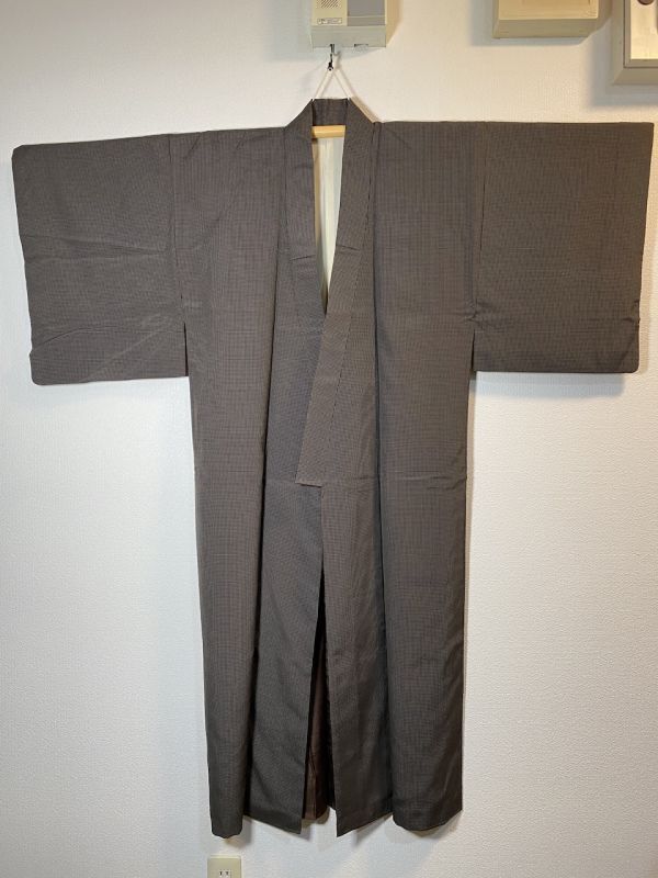- 男着物 焦茶 男性 和装 和服 アンティーク リメイク 身丈 141cm 裄丈 64cm (4091)