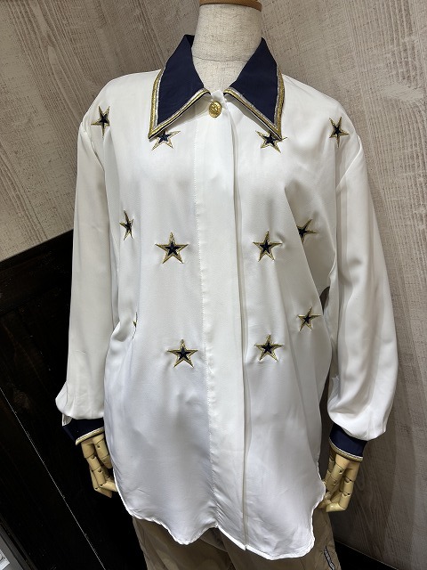 > 90s TESS スター 星柄 エンブロイダリー バイカラー ストーム シールド ブラウス シャツ レディースビンテージ