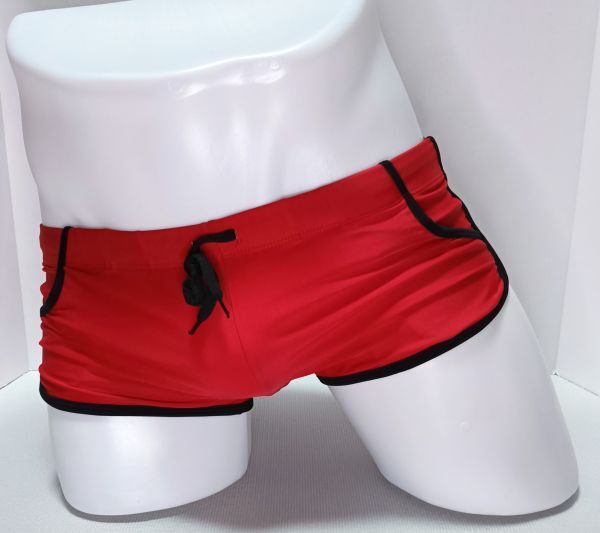 - [新品] ボックス ポケット付 トランクス 水着 ローライズ レッド 日本S~Mサイズ