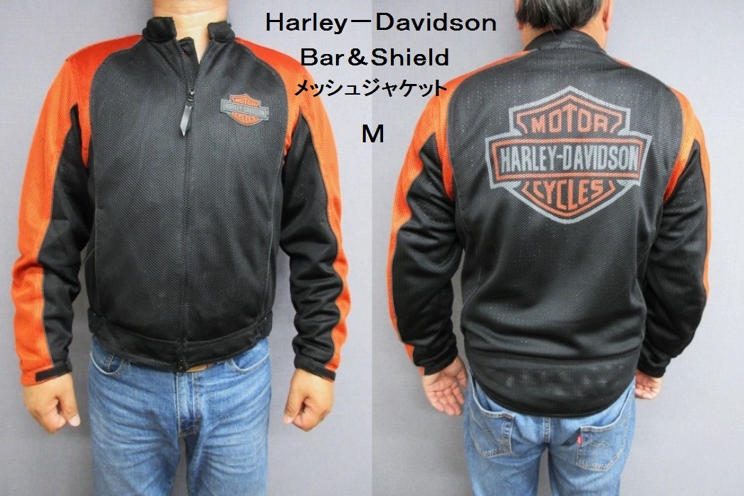 - M ハーレーダビッドソン「Bar&Shield」メッシュ ジャケット ブラック&オレンジ(日本L~XL相当 夏に涼しいライダース