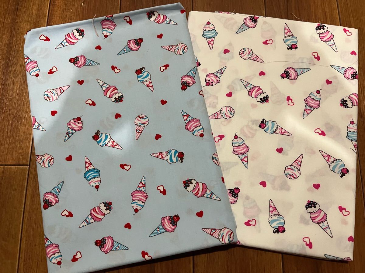 - 新品 各2m アイスクリーム ソフトクリーム 柄 生地 布生地 糸 ミシン 毛糸 ハンドメイド 手芸
