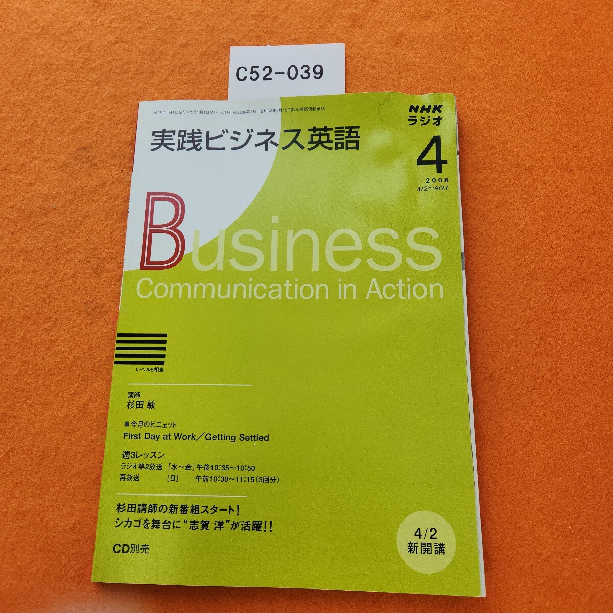 - C52-039 NHK ラジオ 実践ビジネス英語 2008/4 表紙及本体 半分ほど水シミあり。