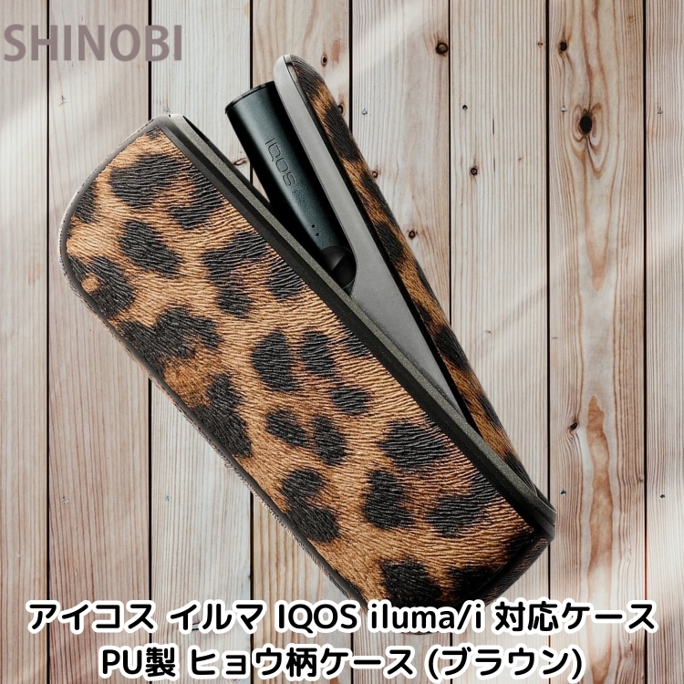 - アイコス イルマ IQOS iluma/i 対応ケース PU製 ドアカバー+ケース 2点セット ヒョウ柄ケース (ブラウン)
