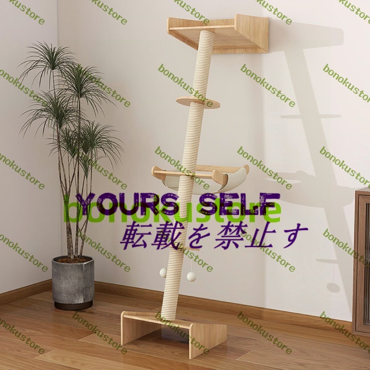 > キャットタワー 木製 突っ張り 木登りタワー 猫タワー 据え置き 猫爪とぎ 宇宙船ハンモック スリム 多頭飼い 麻紐 高い190cm 猫ツリー
