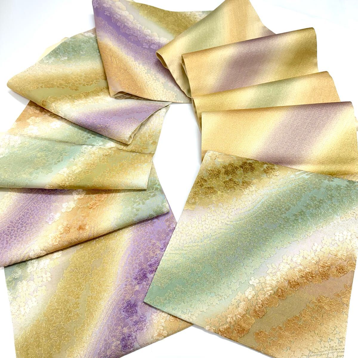 - 【七福】c504 逸品 高級品 正絹 袋帯 六通 輪奈織 金糸 豪華