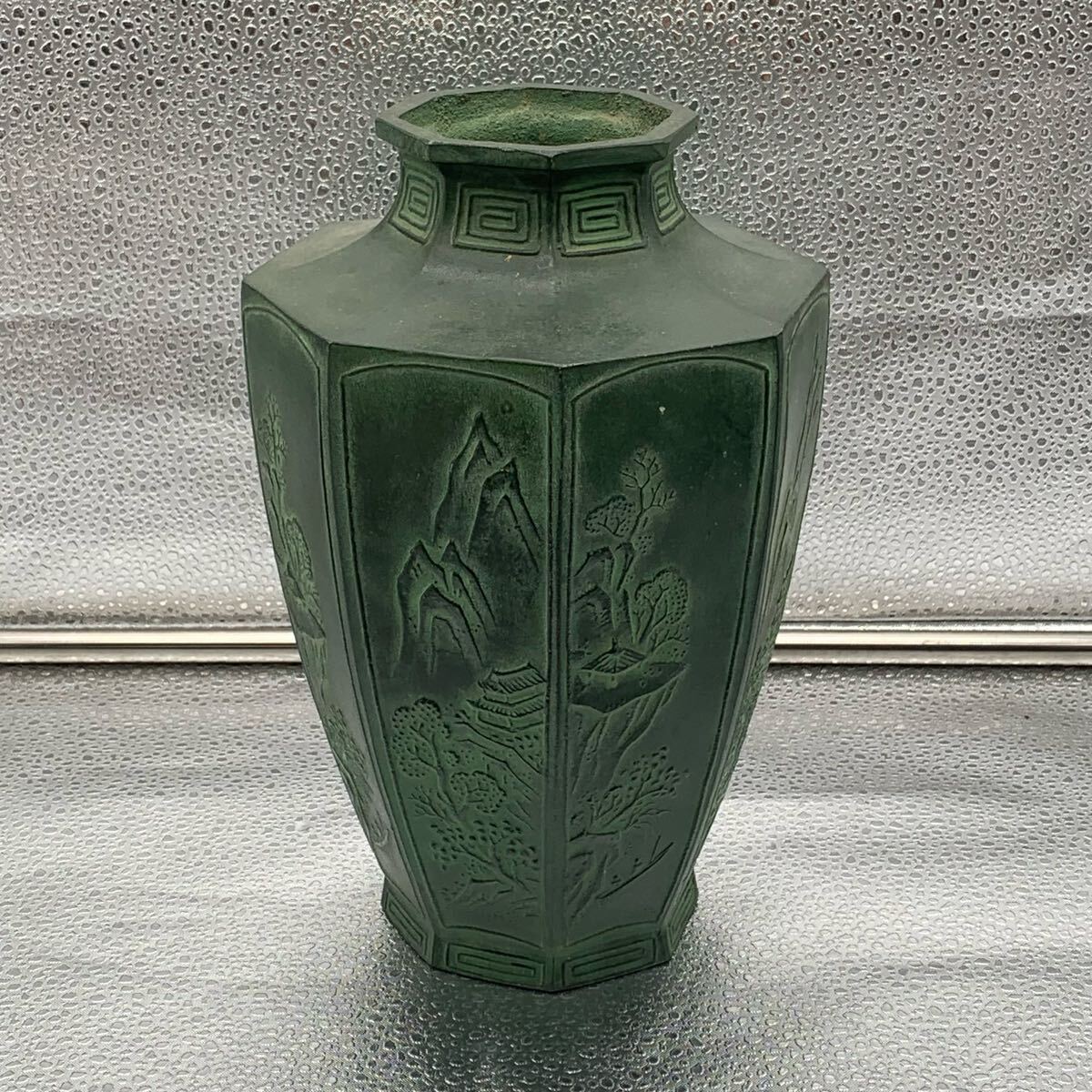 - 0047 渋谷 鳳州作 青銅八角花瓶 骨董品 ビンテージ ヴィンテージ 花器 アンティーク青銅八角花瓶 ブロンズ アンティーク青銅 置物 花瓶