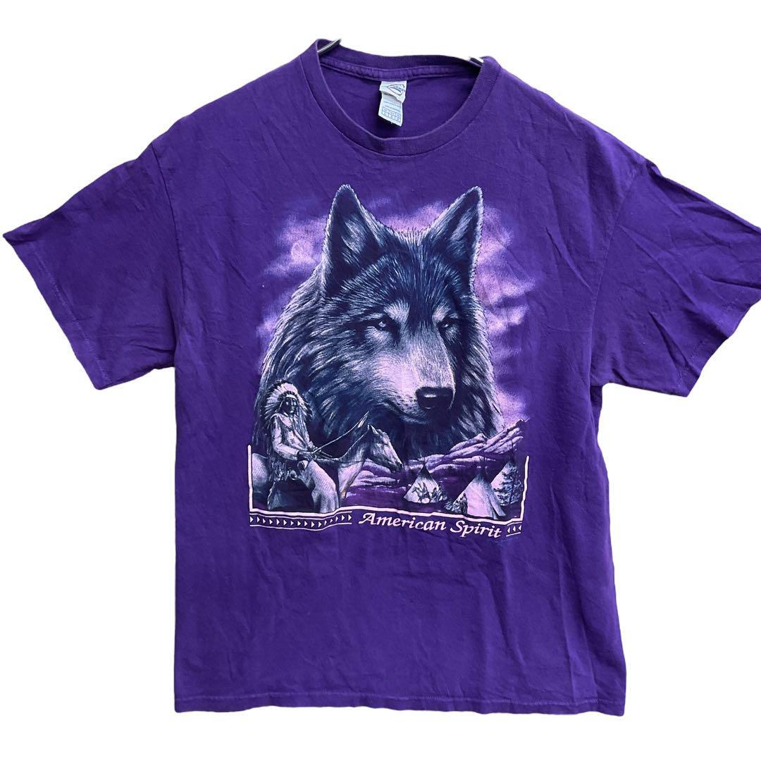 - デルタプロウェイト メンズTシャツ 紫 L 狼 猛々しい 迫力【3570】