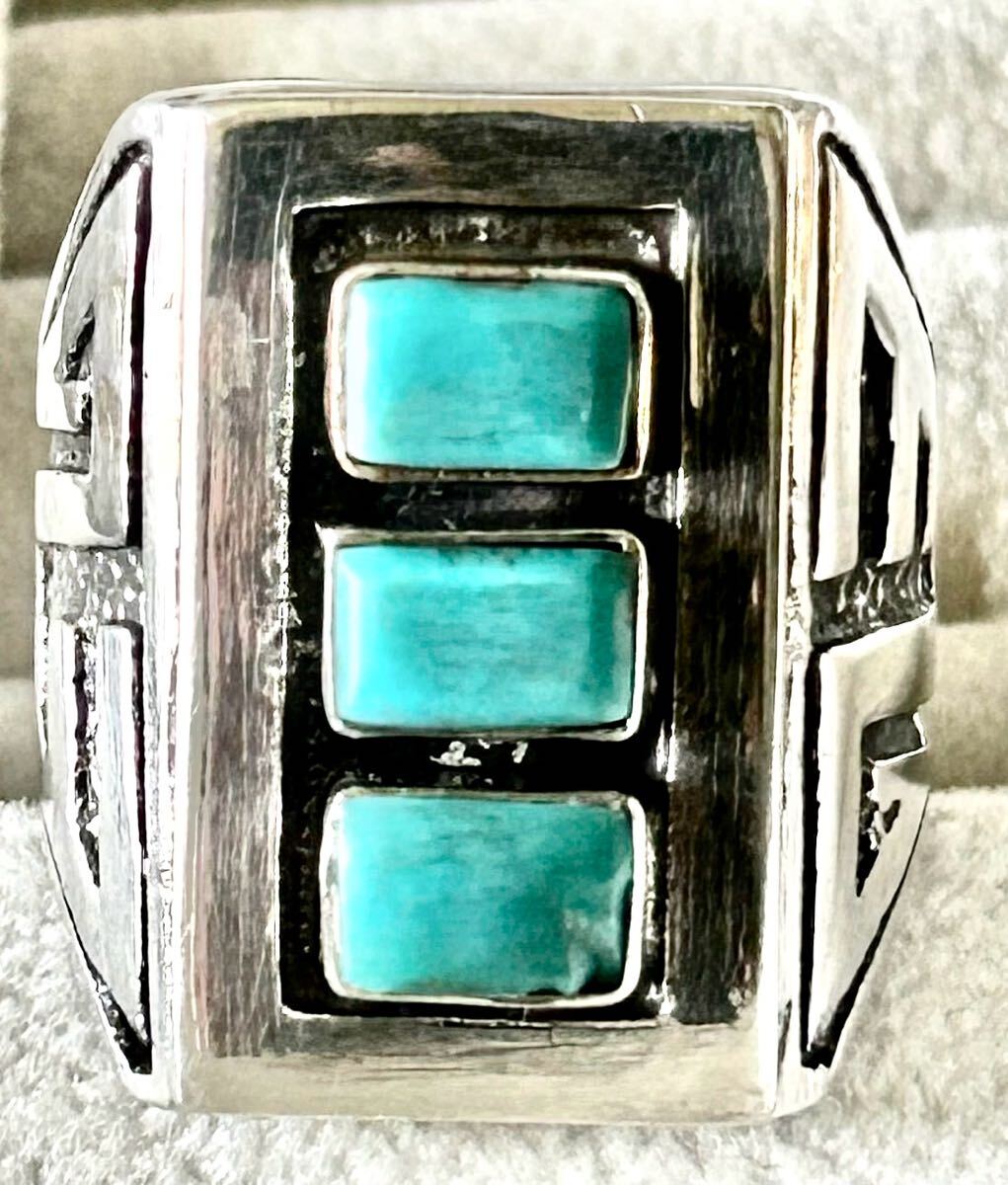 - メンズリング ターコイズ トルコ石 シルバー925 silver 指輪 装飾品 フリーサイズ 12号より