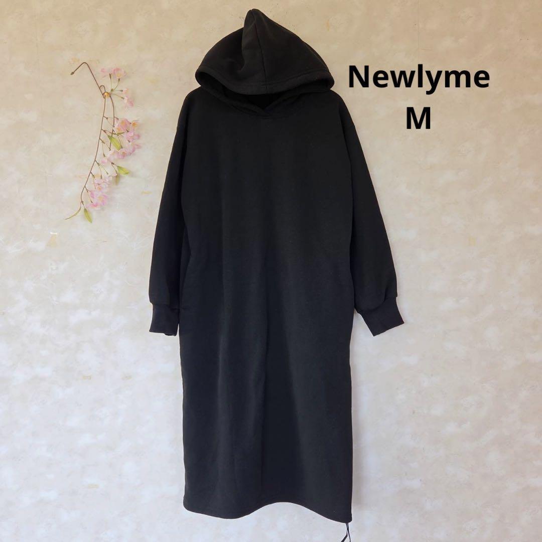 - ニューリミー Newlyme スウェットワンピース【M】黒 ブラック 裾ジップ