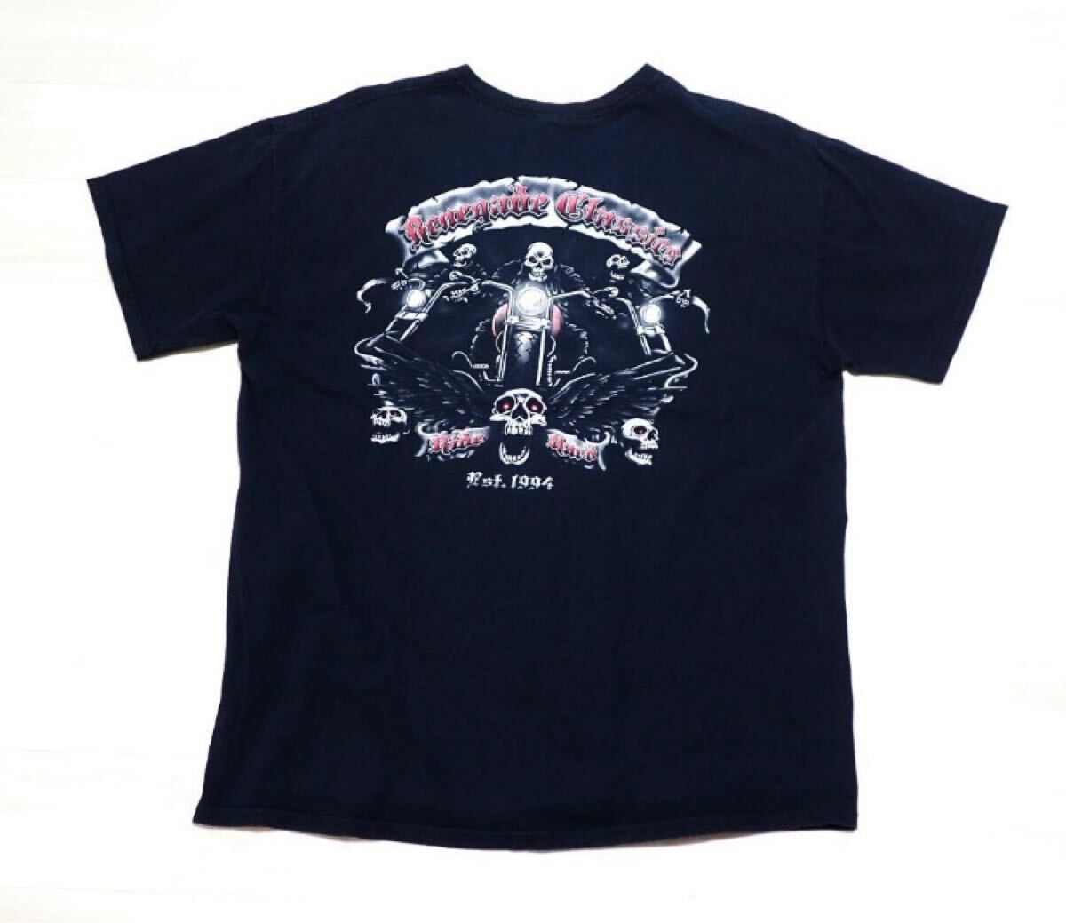 > ☆ドクロデザインがチョーかっこいい!! ☆GILDAN ☆バイクウエア ☆オートバイ ☆半袖Tシャツ ☆ヴィンテージ ☆ブラック ☆XL