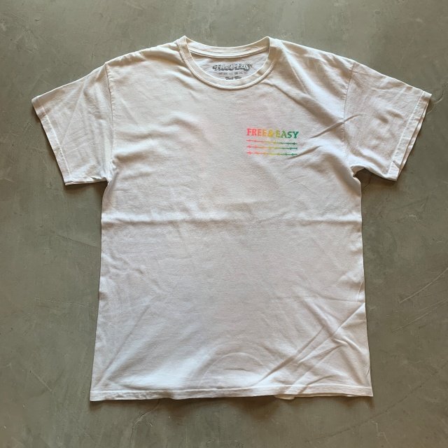 - 【L】USA製 FREE&EASY フリー&イージー プリントTシャツ 白■ビンテージ サーフ コットン ヤシの木