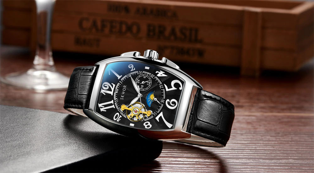 > ☆送料無料☆☆新品未使用☆【SEWOR】 最新モデル 腕時計 Tonneau トールビヨン 2019 自動巻き ブラックシルバー FRANCK MULLER オマージュ