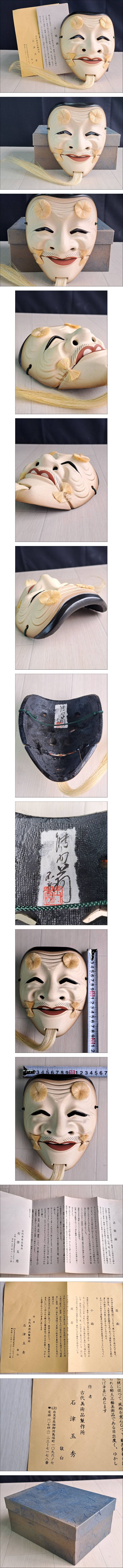 > 石津玉秀作 翁面 古楽面 乾漆 能面 壁掛け 小面 般若 神楽面 舞楽面 郷土玩具 工芸品 古代 美術品 製作所 奈良 漆面 縁起物 元箱付き 希少
