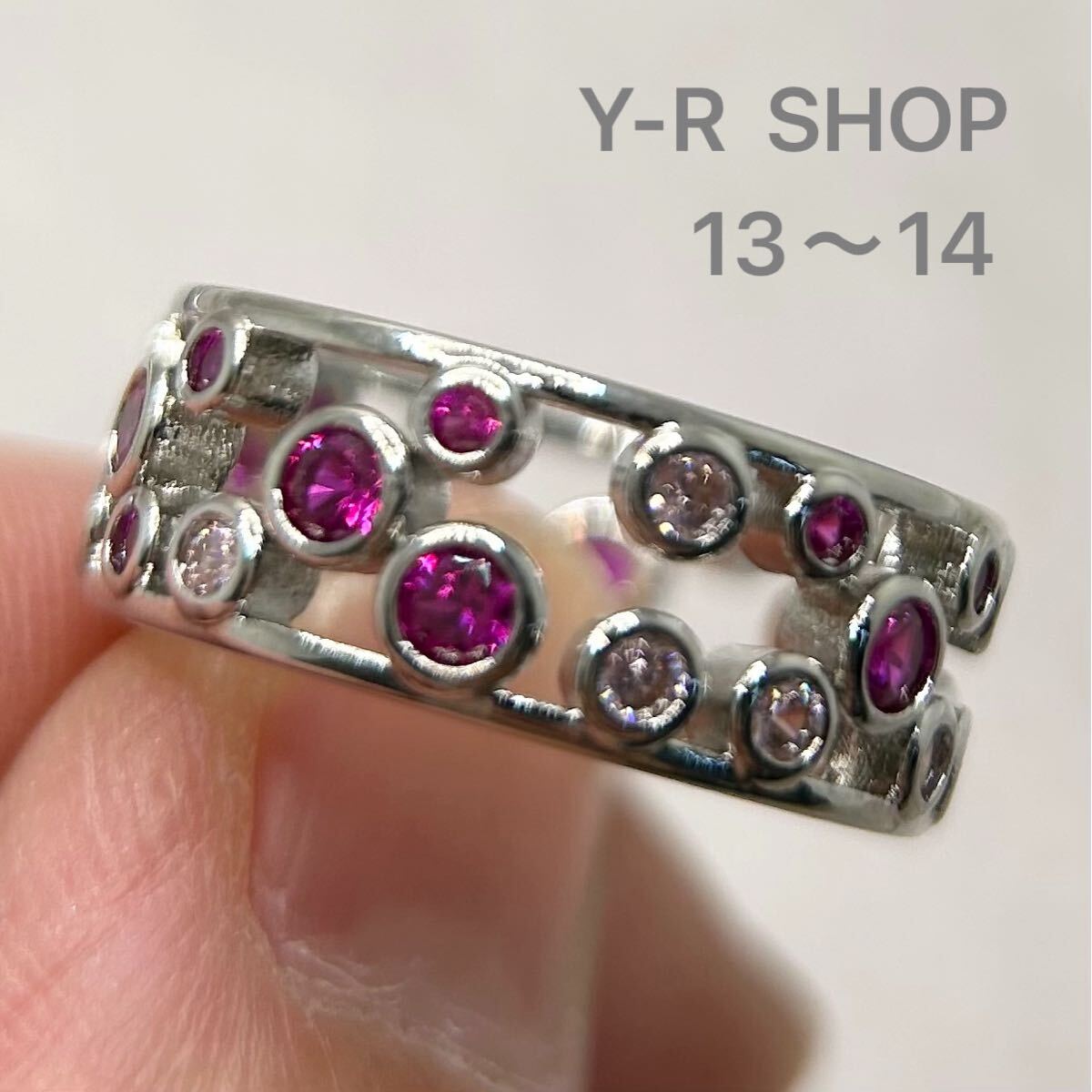 - 13号14号★ルビーとピンクトパーズのシャボン玉デザインリング★レディース指輪シルバーアクセサリーキュービックジルコニア新品宝石Y-R