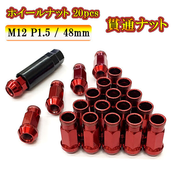 - スチール ホイール ナット ロックナット 貫通ナット ホイールナット サイズ 48mm M12 P1.5 車 ドレスアップ 20pcs レッド