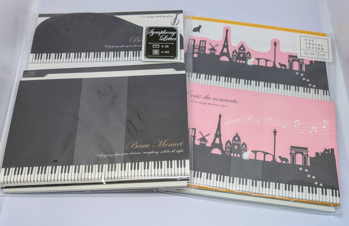 - ★未使用 未開封★ ピアノ柄 レターセット ピンク&ブラック 2柄セット