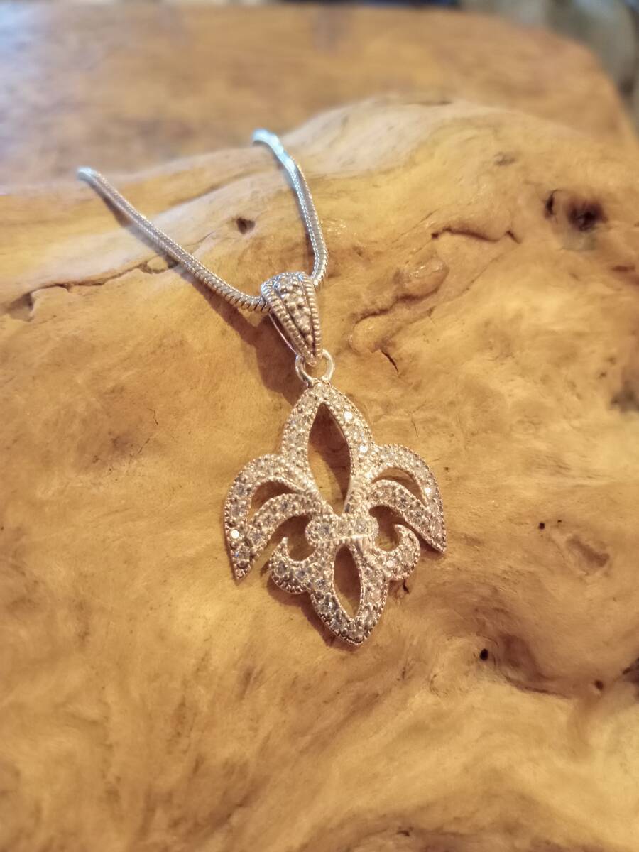- シルバー925,百合紋章,ゆりユリ,ジルコニア,パヴェ,ペンダント,ネックレス