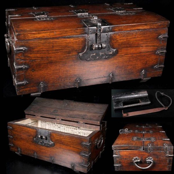 - 【爨】李朝家具 バンダチ 木箱 朝鮮唐物骨董 [V358]Obm/22.6廻/HK/(170)