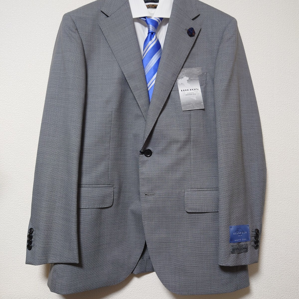 - 新品 未使用 ヒルトン イタリア グアベロ 戸賀モデル スーツ AB6 HILTON ライトグレー 組織柄 TOGA