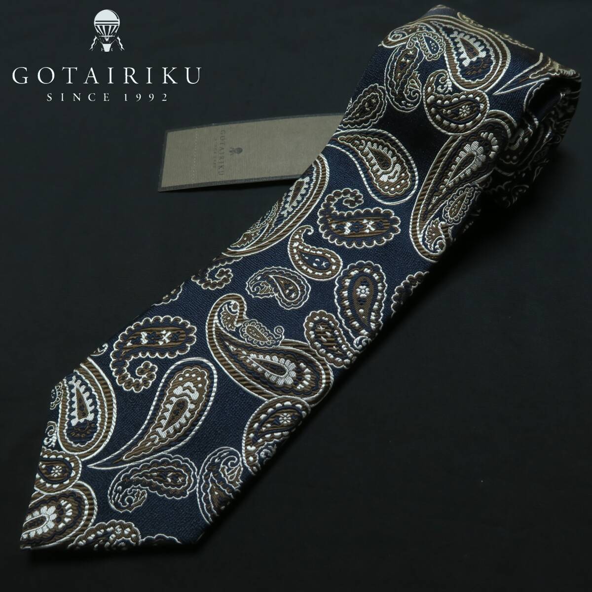 > W164■オンワード樫山 五大陸 ゴタイリク 未使用品 ハンドメイド 日本製 紺色系 ペイズリー柄 絹100% 上質 高級ネクタイ 14300円